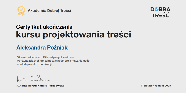 i użyteczność tekstów i komunikatów. Potrafię działać według zasad prostego język – upraszczam przekaz, ale nie spłycam go.